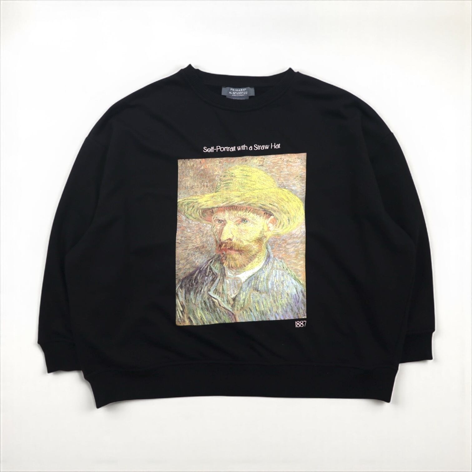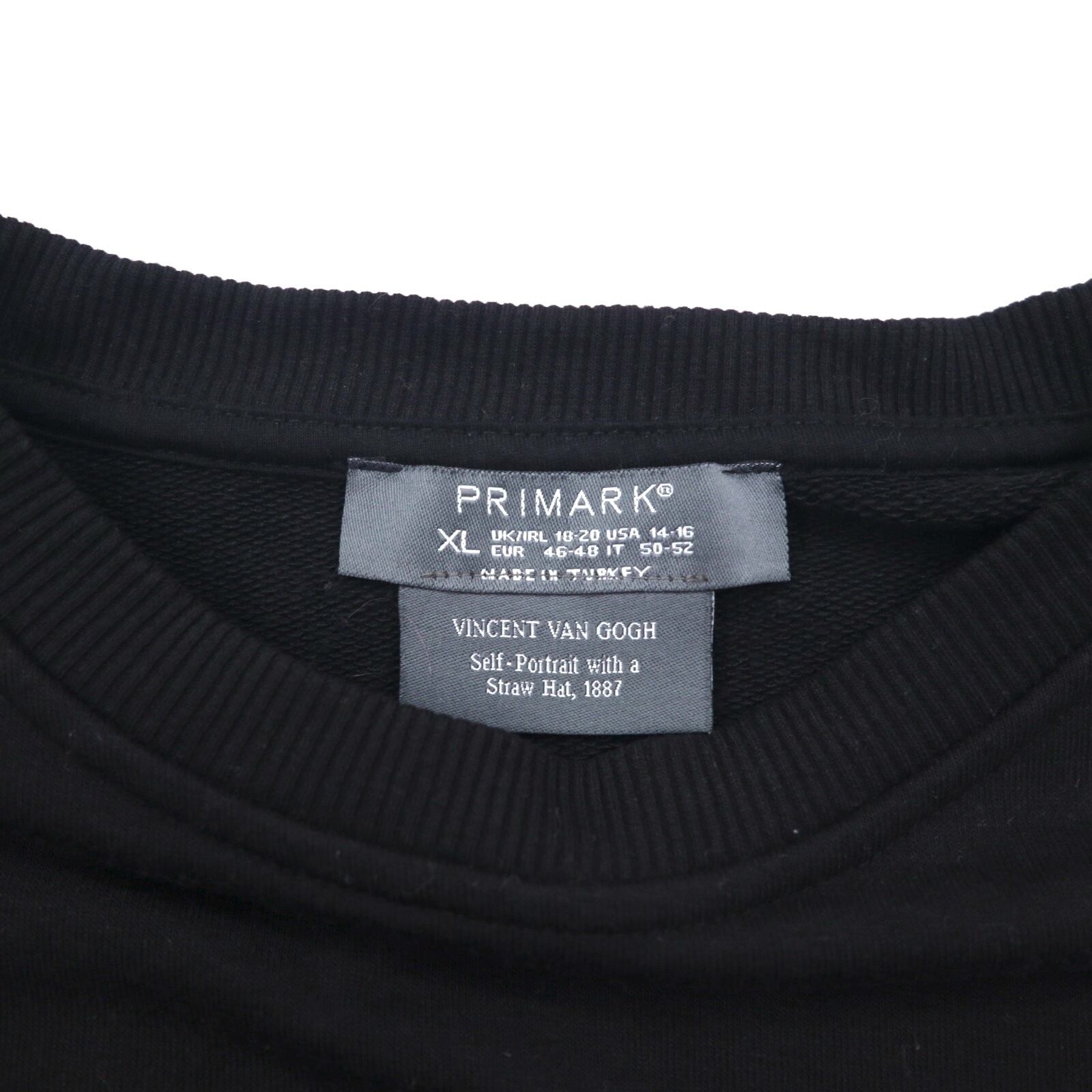 VINTAGE トルコ製 スウェット XL ブラック コットン PRIMARK ゴッホ 麦わら帽子を被った自画像