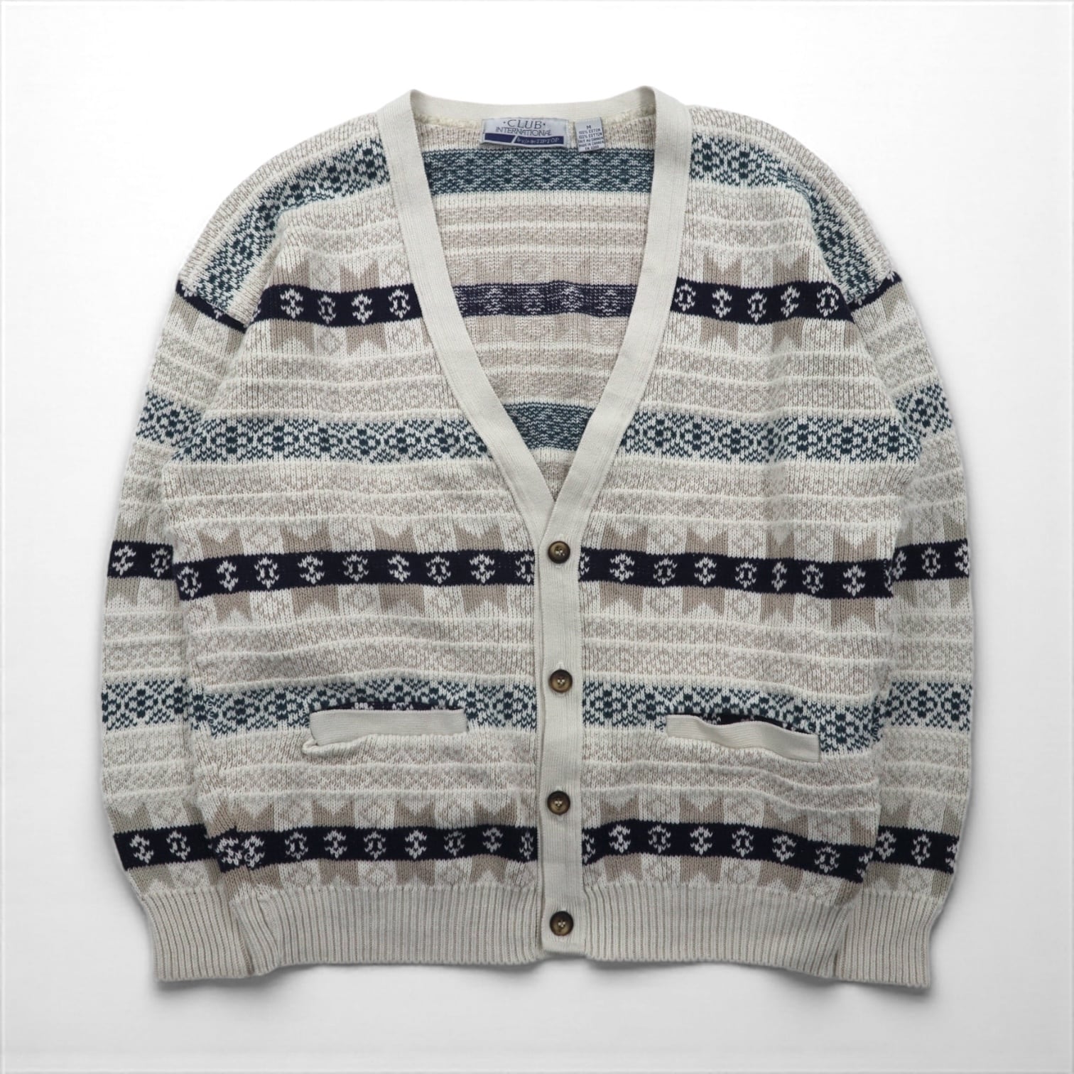 VINTAGE カナダ製 ニット カーディガン M ホワイト コットン CLUB INTERNATIONAL by par TIPTOP