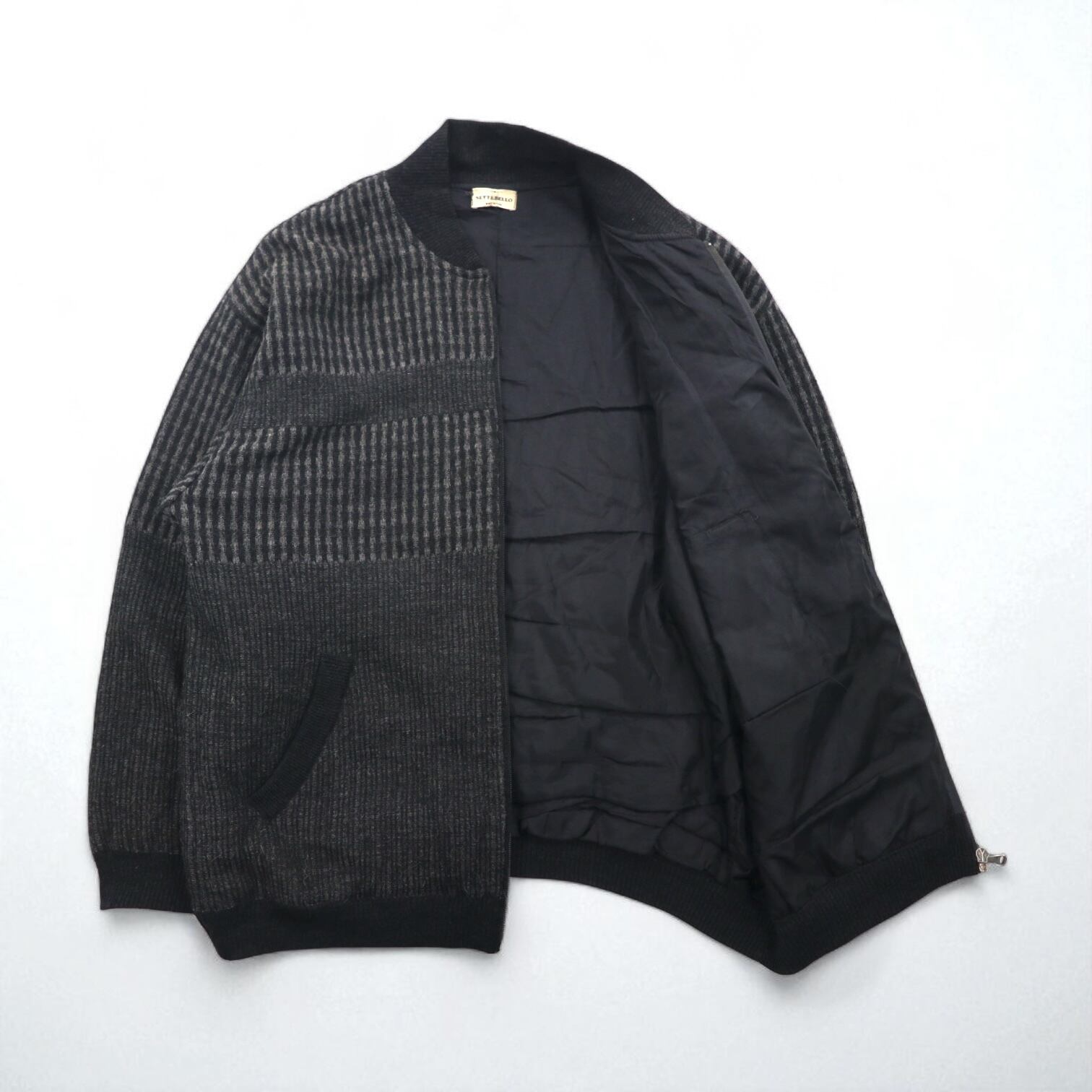 VINTAGE イタリア製 ニット カーディガン ジップアップ ブルゾン L グレー アクリル SETTEBELLO