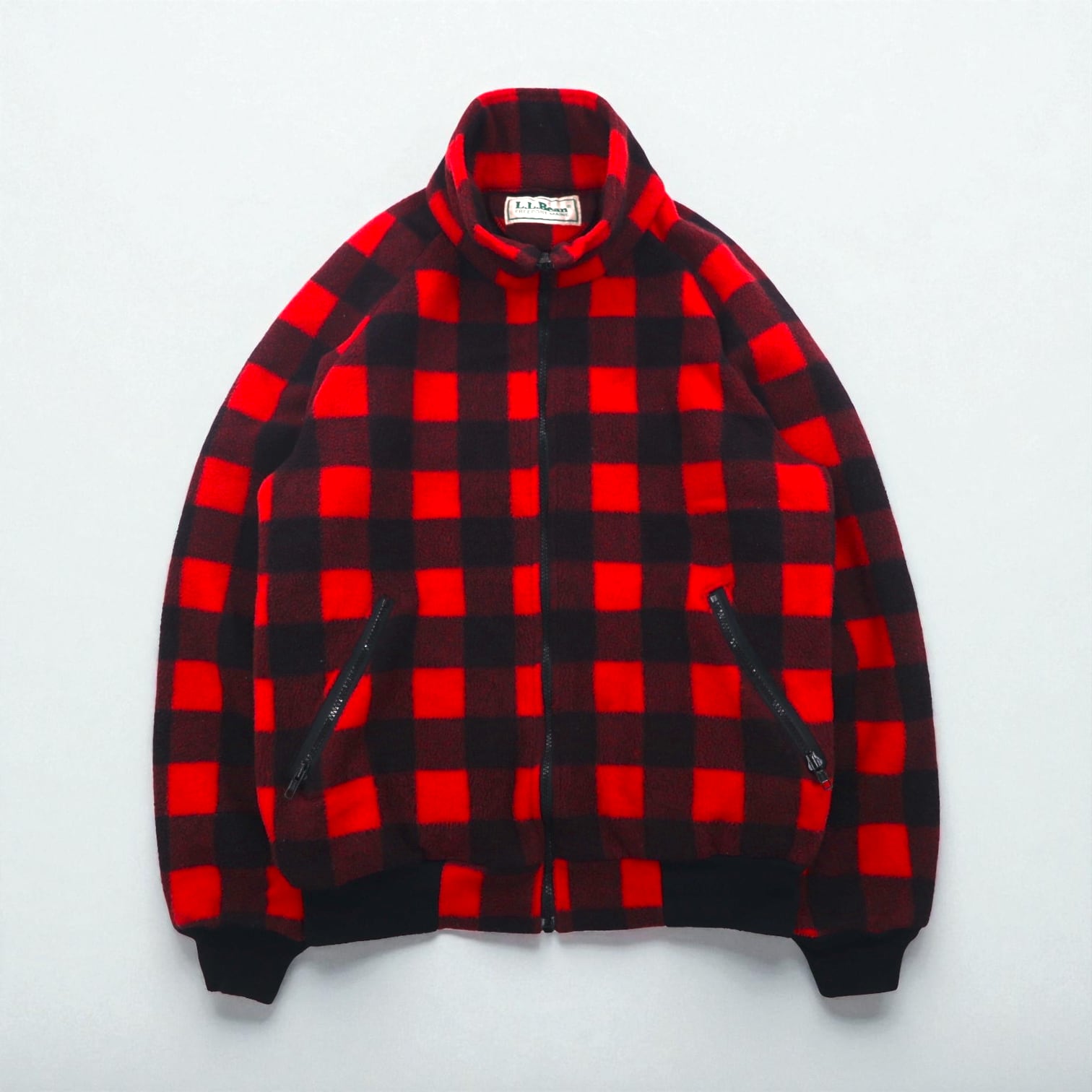 L.L.Bean フリースジャケット M レッド ポリエステル チェック