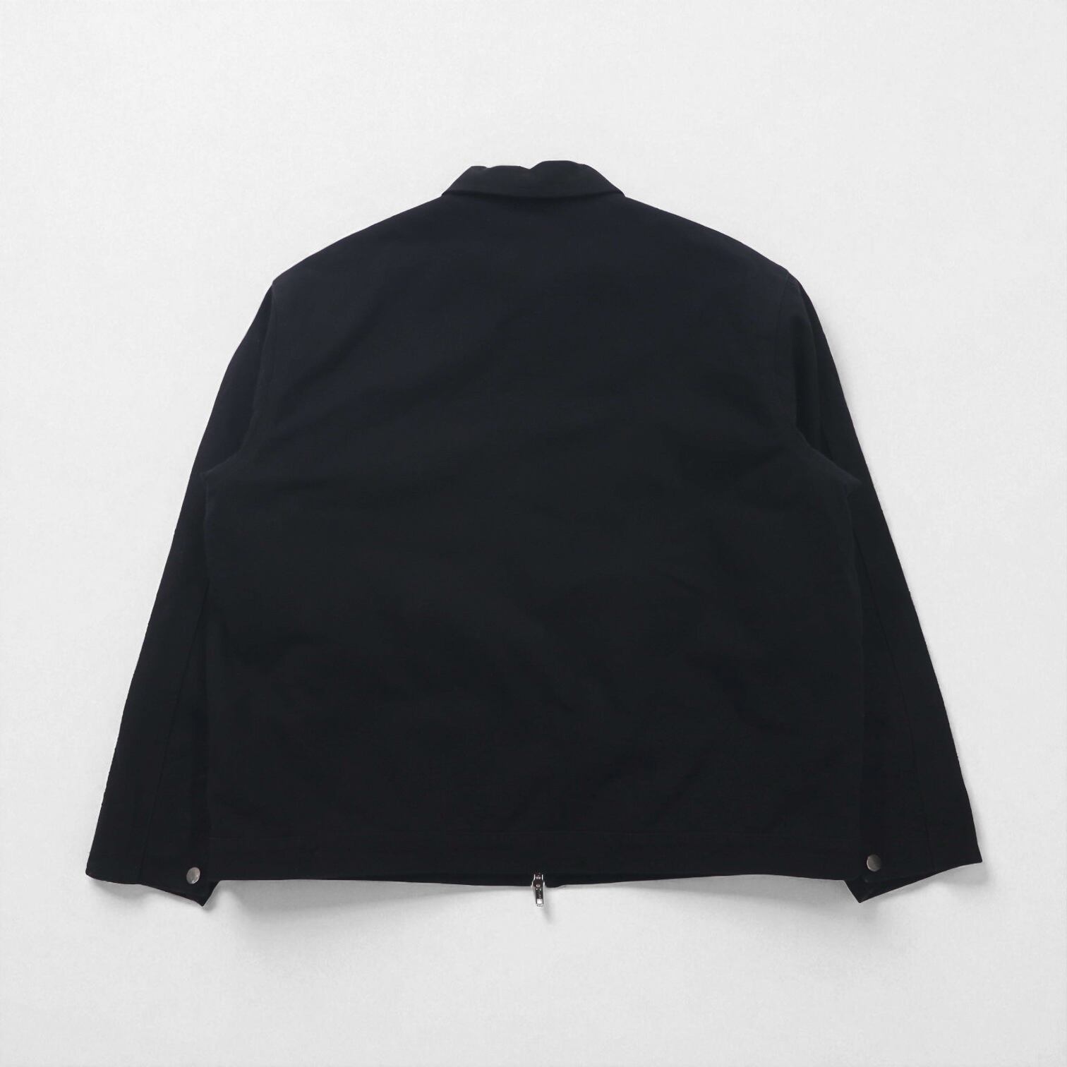 ダブルジップ仕様で、襟付きのクラシックなワークジャケットのシルエットでカジュアルながらも引き締まった印象を与えます