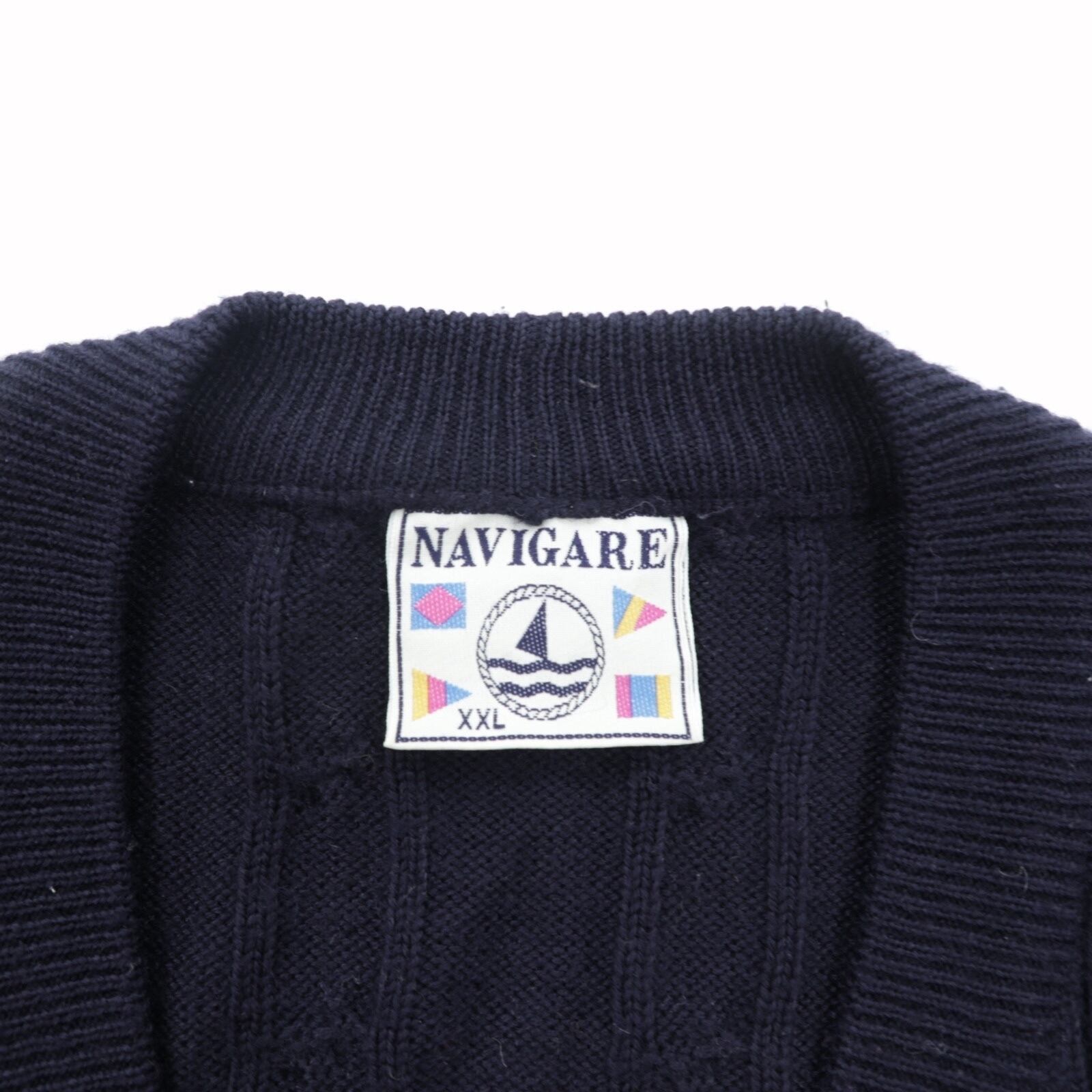 VINTAGE イタリア製 ニット カーディガン XL ネイビー ウール NAVIGARE